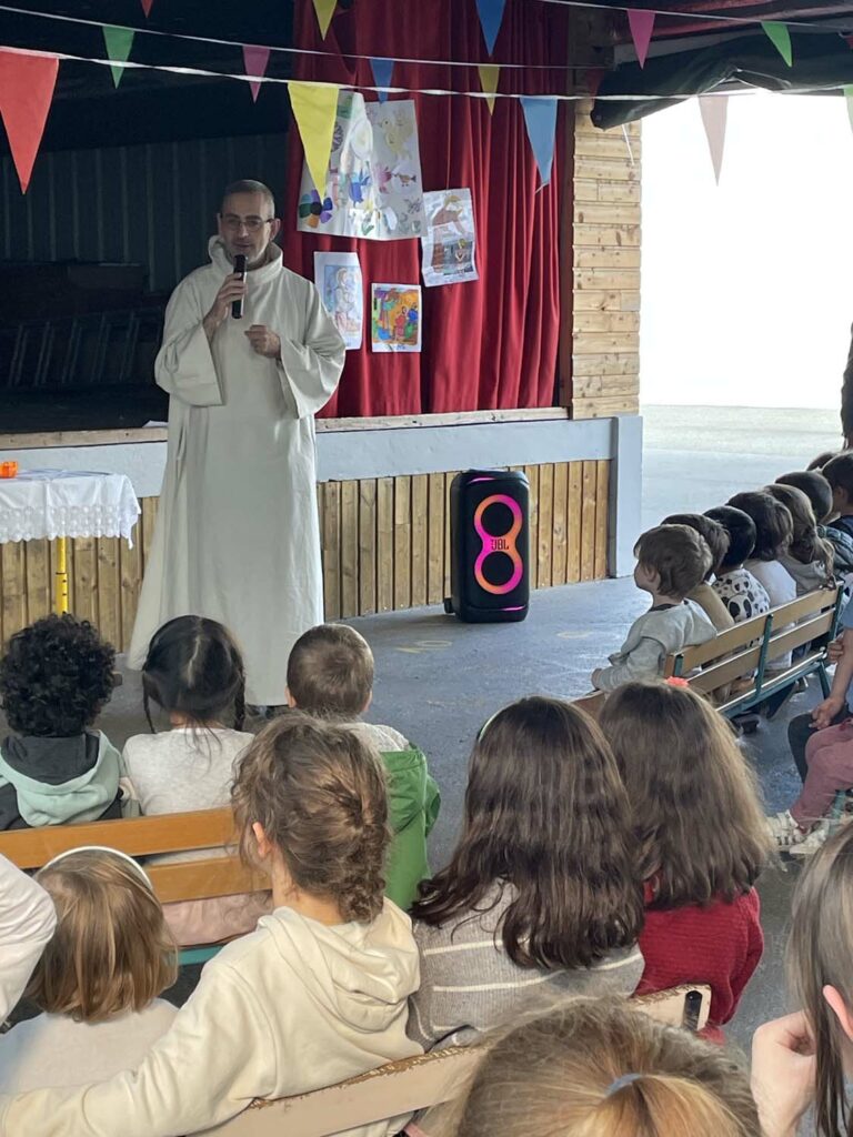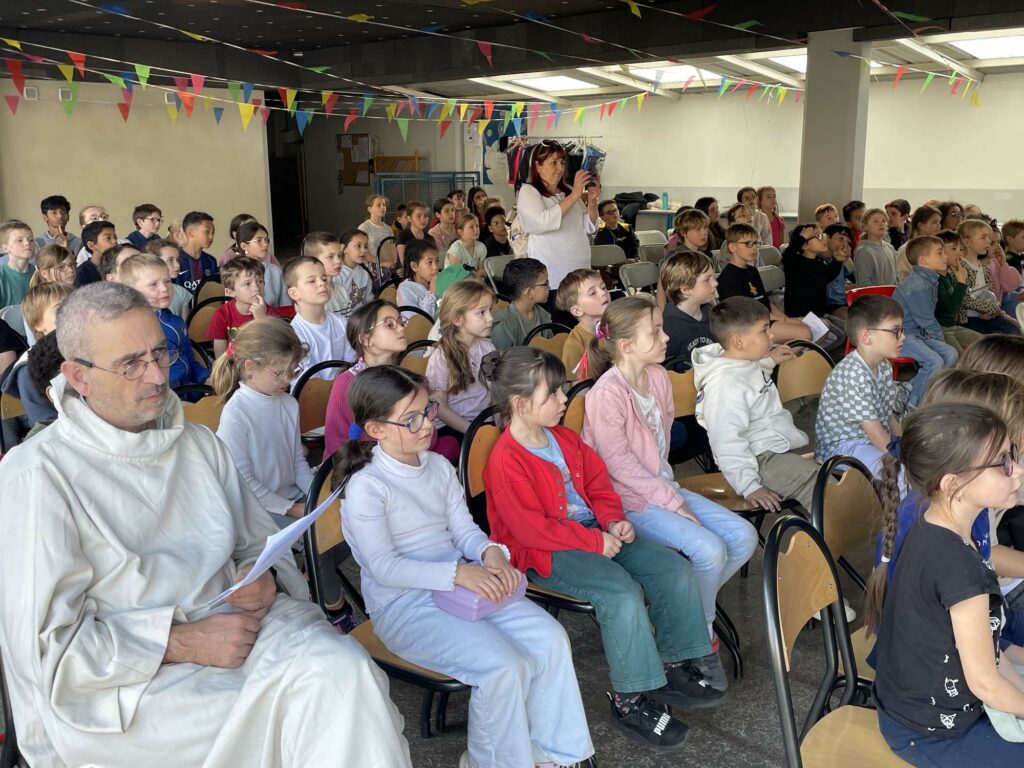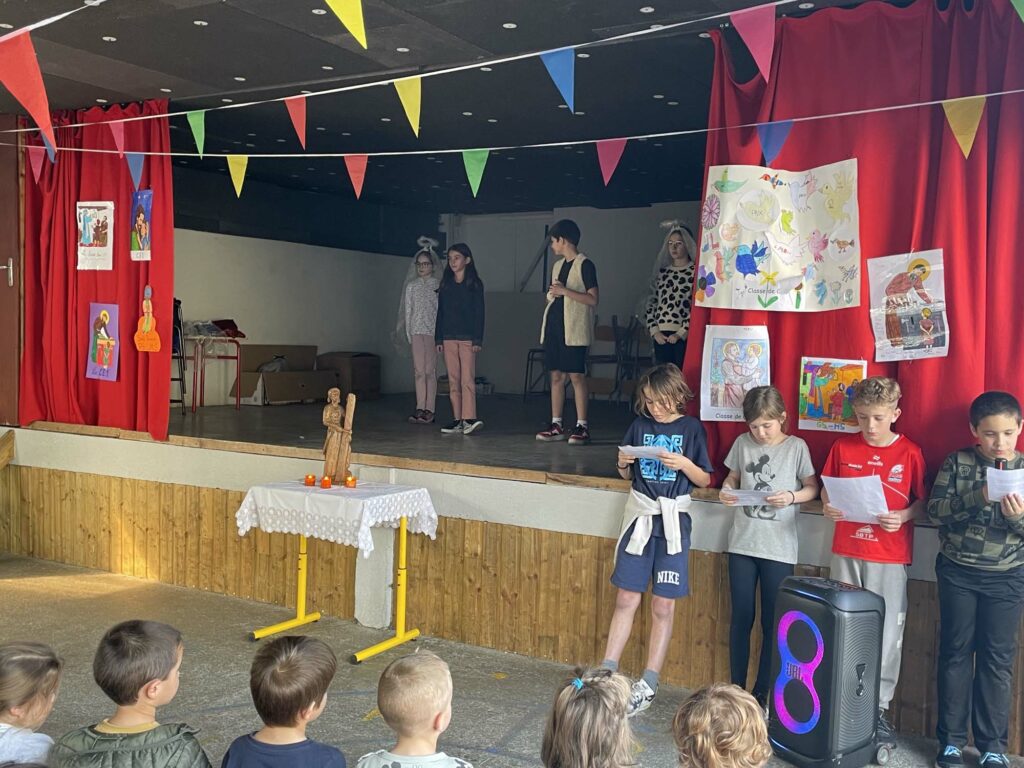 Le 19 mars dernier, les élèves et tout le personnel éducatif de l’école Saint Joseph se sont rassemblés pour une petite célébration autour de leur saint patron. Le but était de mieux connaître cette belle figure, qui a été présentée à tous dans un récit mimé par les enfants du catéchisme. Chaque classe avait préparé un dessin et appris un chant, et pour clore la fête, le père Louis Debon a béni tout le monde. Ce moment était à l’image de Saint Joseph, simple et joyeux ! Merci à tous pour votre implication, et que Saint Joseph veille sur notre école.
